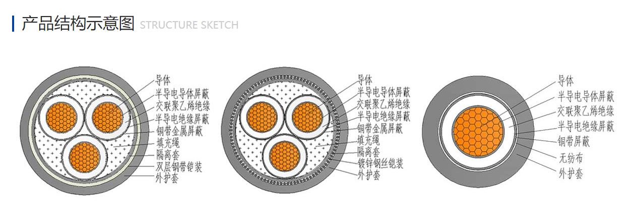 本产品电缆除具有可靠的电气性能外,还具有较强的防止化学腐蚀性,耐酸、碱和有机溶剂,电缆不受敷设落差的限制,可在任何落差甚至垂直的场合敷设。