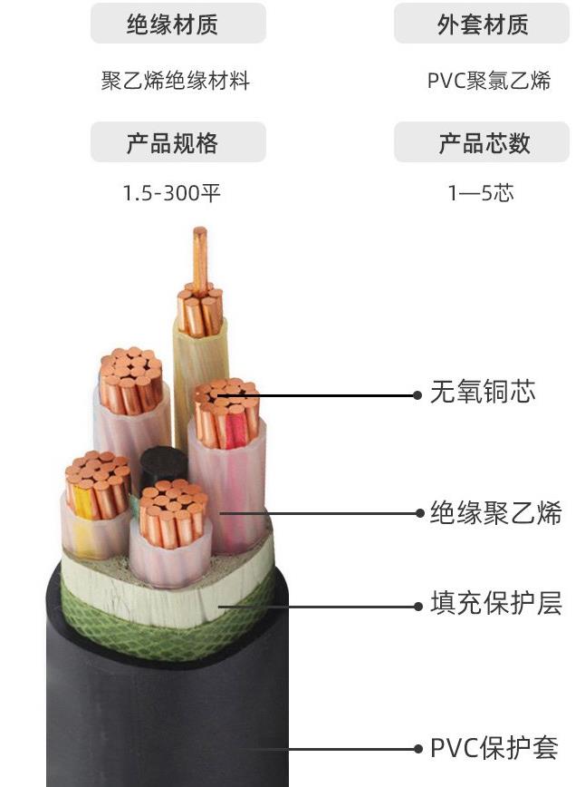 额定电压0.6/1kV聚氯乙烯绝缘电力电缆简称1kv动力电缆/vv电力电缆,本产品适用于配电网、工业装置等领域,用于固定敷设在交流50Hz、额定电压0.6/1kV的电力输配电线路上,主要功能是输送电能。